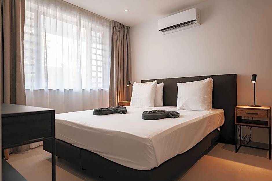 These luxury apartments have views of the pool, ocean and the beach. Located in the private residence of the Shore building, these apartments have access to the private pool and direct access to Blue Bay’s natural beach. The apartments have 2 bedrooms, 2 bathrooms and a fully equipped kitchen. Up to 4 guests. Total unit space: 561 ft² / 1840 ft². Located on ground floor, first or second floor.
