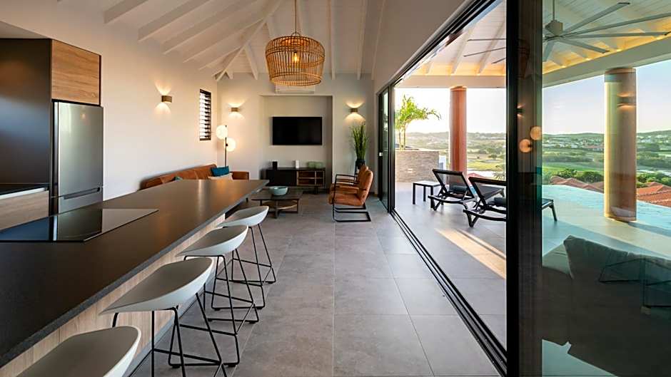 The luxury apartment offers panoramic views from your private infinity pool on the spacious porch and the Caribbean Ocean. The apartment has 2 bedrooms, each with their own bathroom. The unit offers an open plan living area has fully equipped kitchen. Up to 4 guests. Total unit space: 584 ft² / 1915 ft². Located on the top floor.